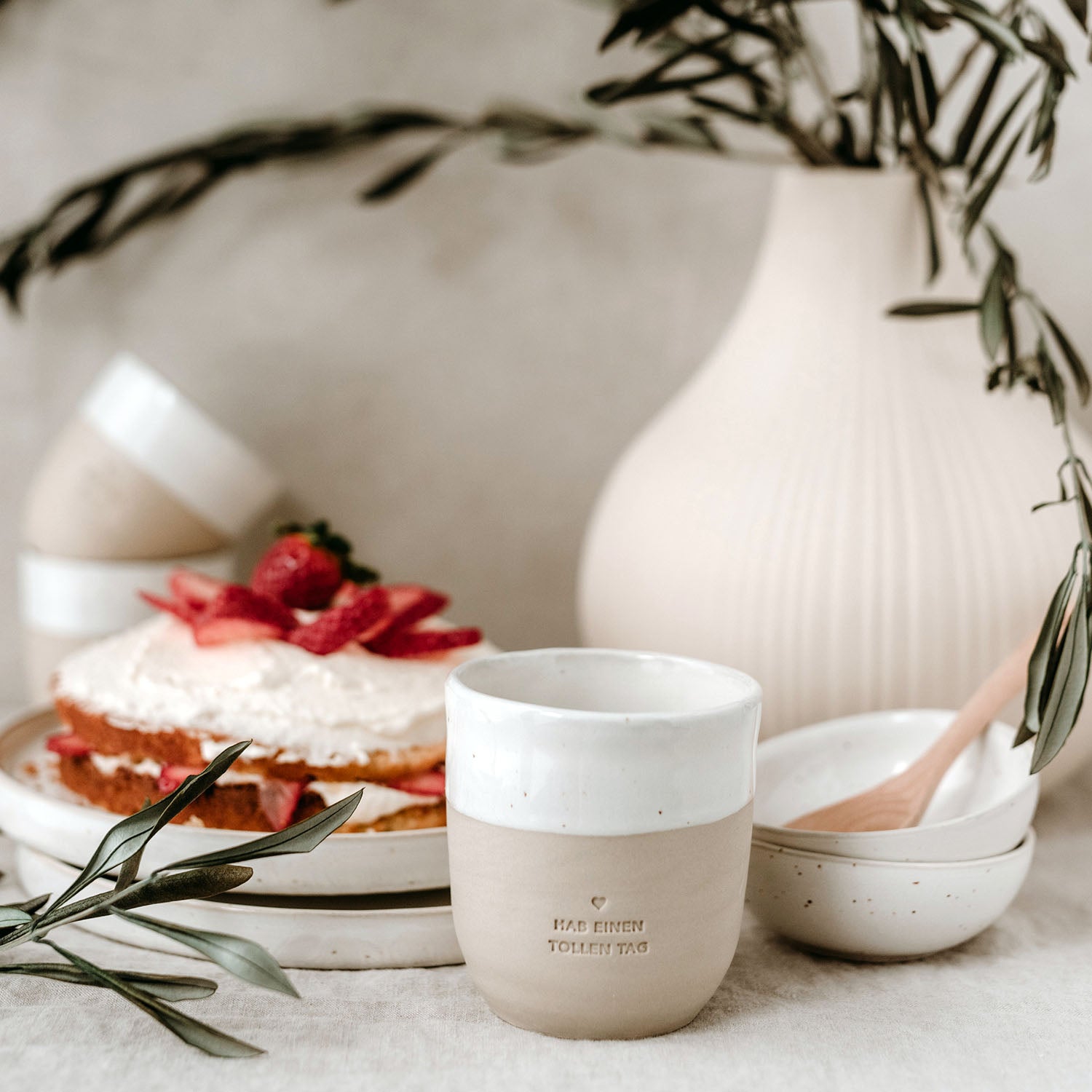 Wir freuen uns so sehr, dass wir Euch unseren wundervollen neuen Becher Toller Tag aus Steingut endlich vorstellen dürfen!